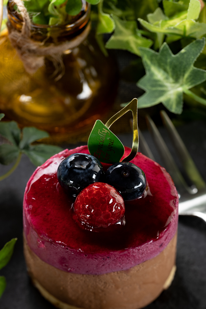 チョコムースのほろ苦さとカシスムースの酸っぱさのバランスがたまらない隠れ人気商品。