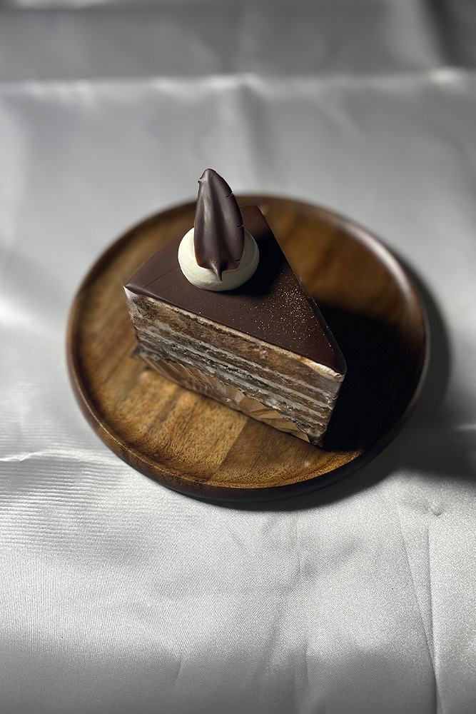 ザッハトルテの生地と生クリームを幾重にも重ねて層にした当店の人気商品。
