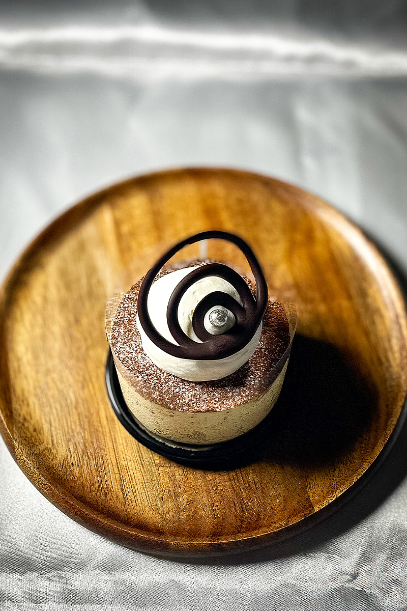 軽い口当たりのマスカルポーネムースにコーヒーのクレームブリュレを入れた【ティラミス風】ケーキ。